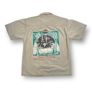 Harley Davidson Gone Fishing Front Button Shirt Size Medium