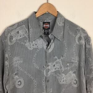 Harley Davidson Gray Motorcycle Print Shirt Medium