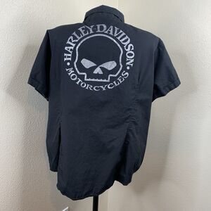 Harley Davidson HD Black Short Sleeve Snap Button Shirt Sz 2XL Skull Sparkle