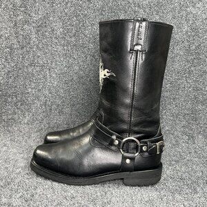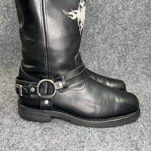 Harley Davidson Harness Boots Men's Size 8 Black Leather Motorcycle Riding Pull
