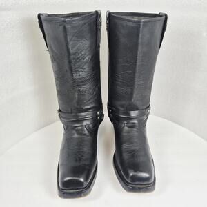 Harley Davidson Harness Motorcycle Boots Mens Blk Leather USA Sz 10 Vtg Sq. Toe