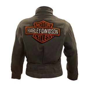 This jacket has all the Harley Davidson logos sewn throughout. It has been gently used.