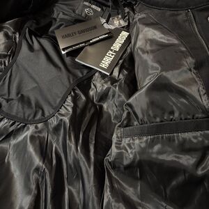 The Harley Davidson Jacket in size 3XL is a classic black denim trucker riding jacket designed for men who appreciate the biker and motorcycle theme. Made from a durable blend of Cordura® nylon, cotton, and modal, this jacket features a zipper and snap closure and the iconic Harley-Davidson logo accents. With a regular fit and big & tall size type, it is ideal for travel, casual wear, work, or business occasions during the winter, fall, or spring seasons. This jacket, part of the Harley-Davidson FXRG product line, offers both style and functionality for the modern rider. This Harley Davidson Jacket has all the original tags attached.