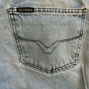 Up for your consideration is a pair of Vintage y2k Harley Davidson Grunge Blue Jeans in Mens size 36x34. Light wash. One minor flaw in the form of a brown spot on the left rear leg. Open to offers. Fast shipping.