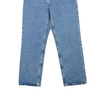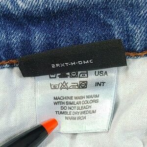 There is some light stains/ small fray marks on bottom of leg hem's. Otherwise, these jeans are in great pre-owned condition. Approximate measurements are provided in the photo's.