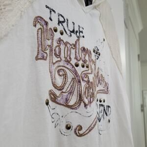 Harley Davidson Lace Sleeve Pullover Henley Long Sleeve Hooded Top Women Sz S