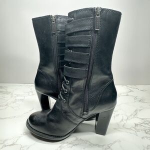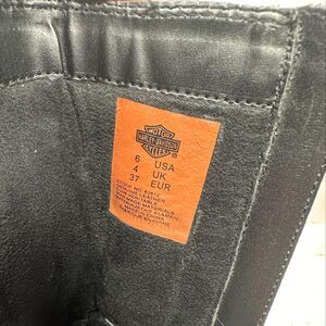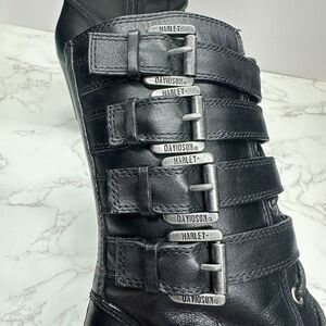 Harley Davidson Ladies Black Leather Boots Size 6 Mid Calf Buckles Zip Lace Up