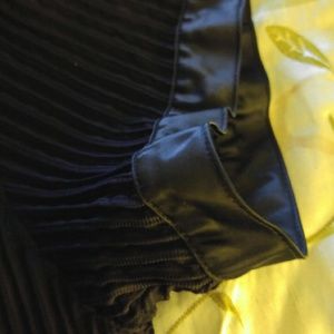 Black, XL (HD runs small), satin trim, ribbed texture and somewhat see-through.