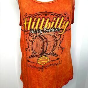 Harley Davidson Large Burnt Orange Graphic Round Hem Women's Tank Top Biker