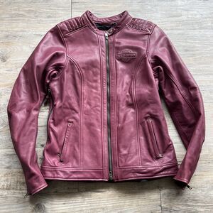 Harley Davidson Leather Jacket Women's Small Red Purple Electra Mandarin Studded
