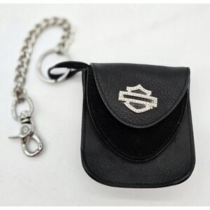 Harley Davidson Leather Pouch With Chain & Snap Closure