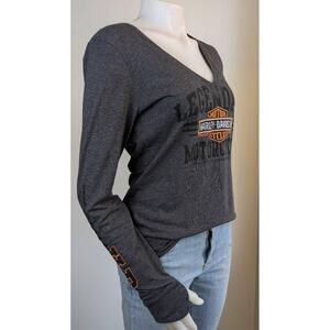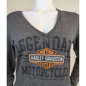 Harley Davidson Legendary Motorcycles Womens V‑Neck Tee Medium Long Sleeve Gray