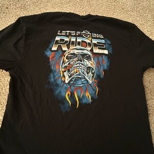 This black tee features a striking flame graphic, perfect for adding an edge to your casual look. Only worn once or twice!