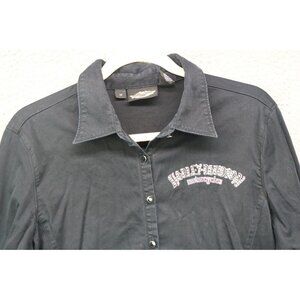 Harley Davidson Long Sleeve Button-Up Shirt-Medium-Rhinestones-Angel Wings