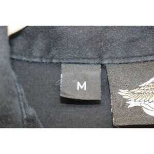 This is a Harley Davidson Long Sleeve Button-Up Shirt that is a size Medium. It is 98% Cotton and 2% Spandex. Laying flat, it measures: Armpit to armpit-20" and the length is 24.5". It has rhinestones and Angel Wings on the back. Minor wear, in good condition.