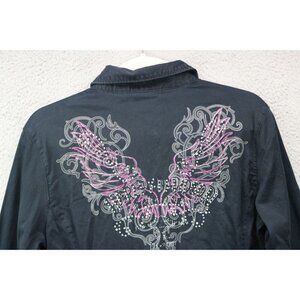 Harley Davidson Long Sleeve Button-Up Shirt-Medium-Rhinestones-Angel Wings