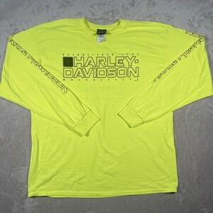 The Harley Davidson Long Sleeve T-Shirt in Men's XL is a neon grunge shirt featuring a graphic print with the Harley Davidson logo. Made of cotton knit material, this regular-fit t-shirt is perfect for all seasons and is easy to care for. The crew neckline and long sleeves provide a comfortable and casual look, while the double-sided print adds an extra touch of style. Whether you're a Harley Davidson enthusiast or just looking for a bold graphic tee, this shirt is sure to make a statement.