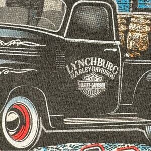 Harley Davidson Lynchburg, Tennessee Dealer Motorcycle Graphic T-shirt Men's Large. Good preowned condition. Graphics have some cracking, with some wash wear. Measurements are approximate taken flat.