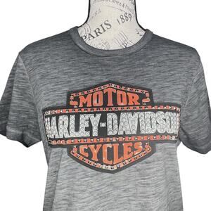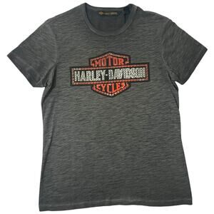 Harley Davidson (M) Raw-Edge Neck Printed Graphic Studded Logo Short Sleeve Tee