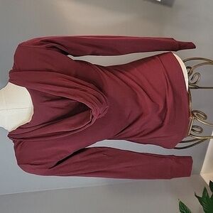 Maroon Harley Davidson hooded top with beaded applique logo across the chest in Size small.