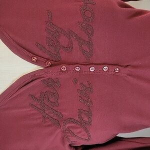 Harley Davidson Maroon Beaded Logo Hooded Stretchy Long Sleeve Button Top Size S