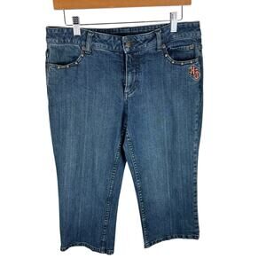 Harley Davidson Medium Wash Mid Rise Embroidered Studded Jean Capris Size 10