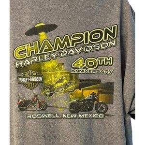Harley Davidson Mens 3XL Champion Roswell N.M T Shirt Alien Spaceship UFO 40th