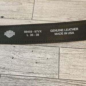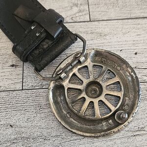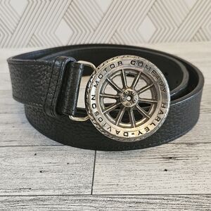 Harley Davidson Men's Black Pebbled Leather Belt Tire Logo Buckle Size Large