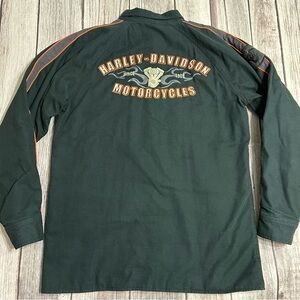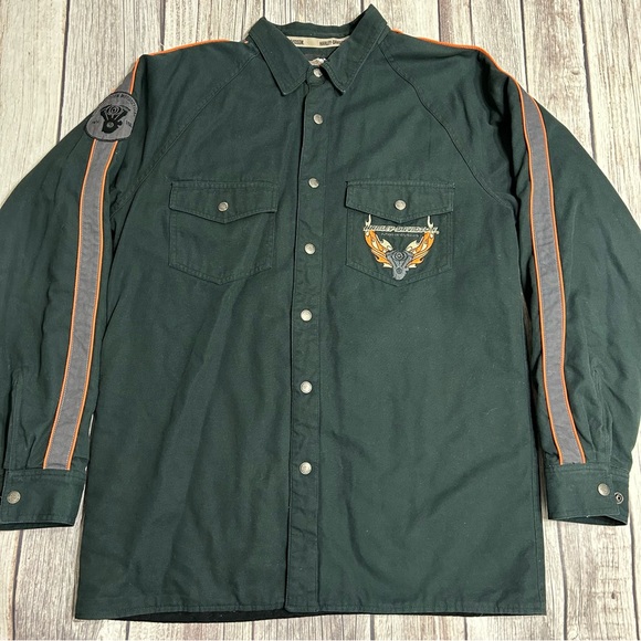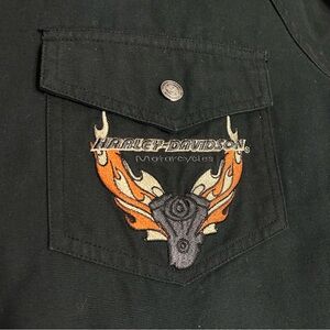 Harley Davidson Men’s M Black Shacket Button Up Canvas Motorcycle Pockets Jacket