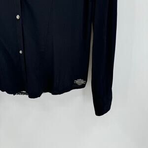 Harley Davidson Mixed Media Lace Velvet Button Top Sz M Black Rhinestone Tunic