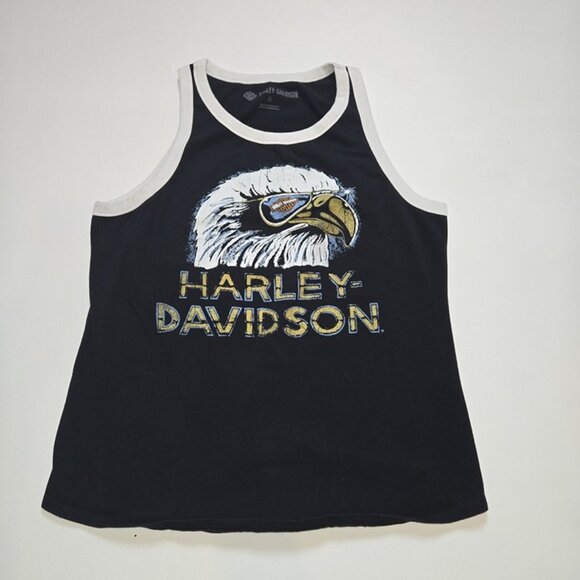 Harley Davidson Mororcycles Eagle Glasses Black Ringer Tank Top Women 2XL White