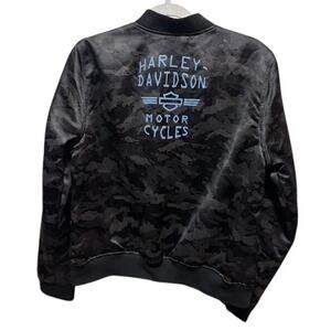 Harley Davidson Motorcycle Biker Pixel Camo Reflective Black Jacket Women’s Large lightweight but still solidly made with a great logo on back. In EUC. See pics for measurements ad condition confirmation.
