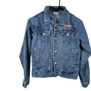 Harley Davidson Motorcycle Blue Jean Denim Logo Trucker Jacket Big Kid 12/14