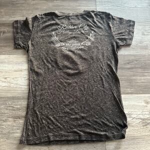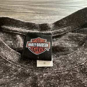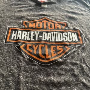 Harley Davidson Motorcycle Gray Womens M Brand Logo Graphic Tshirt Akron Ohio back hit biker tee polyester linen casual streetwear motorcycle graphic short sleeve crewneck tshirt lightweight Rubber City Harley Davidson Akron OH, no flaws