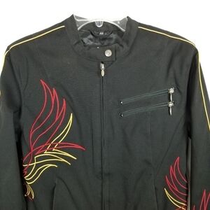 Harley Davidson Motorcycle Jacket Full Zip Black Embroidered Fire Red Gold Women
