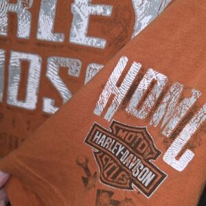 Experience comfort and style with this Harley-Davidson orange t-shirt. Perfect for casual outings, this shirt showcases the iconic brand logo.