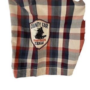 Harley Davidson Motorcycle Patch Button Shirt Blue Beige Plaid HDMC Men's 2XL
