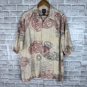 Harley Davidson Motorcycles 100% Silk Graphic Hawaiian Style Camp Shirt Mens XL