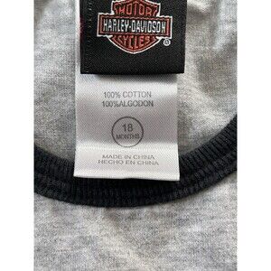 The Harley Davidson 18 month Bodysuit Creeper is a stylish and cozy one-piece outfit for babies and toddlers. Featuring the iconic Harley-Davidson brand logo and design, this gray bodysuit is perfect for young rebels who love motorcycles. Made for both boys and girls, this American-themed onesie is ideal for little ones who are ready to join the ranks of the motorcycle-loving gang. Whether your little one is staying at home or heading out for a ride, this bodysuit creeper is sure to make them stand out in style.