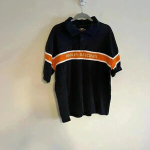 Harley Davidson Motorcycles Black Orange Striped Golf Polo Large