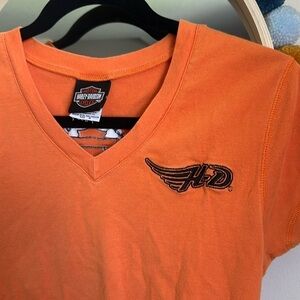 Harley Davidson Motorcycles Embroidered Baby Tee V Neck Top Short Sleeve