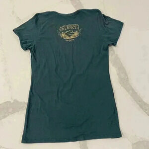 Harley Davidson Motorcycles Dark Green Scoop Neck Gold Graphic T Shirt Valencia Espana Women’s Large