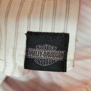 Harley Davidson Motorcycles Size Large Button Down Shop Embroidered Shirt - White with beige pin striping.