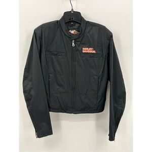 Harley Davidson, motorcycles, women's, cafe racer, size large, nylon jacket, zip moto, black, size M, biker, rider, motorcycle gear, fashion, style, Harley Davidson apparel, motorcycle jacket, Harley Davidson clothing, women's fashion, motorcycle fashion, Harley Davidson accessories, Harley Davidson merchandise
