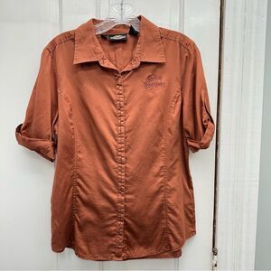 Harley Davidson Motorcycles rust terracotta button down shirt women's medium