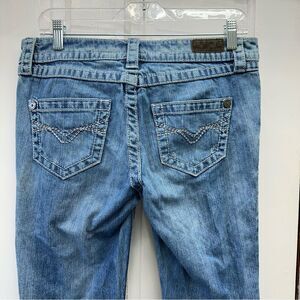 Harley Davidson Motorcycles thick stitch boot cut denim jeans women's 6 lay flat waist is 16.5 inseam is 31