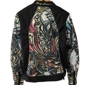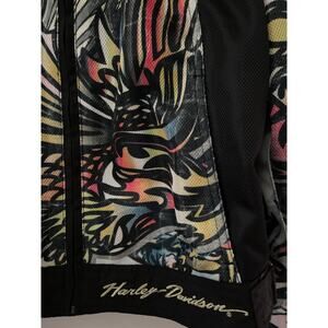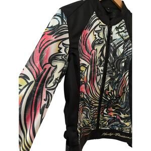 Harley Davidson Multicolor Tattoo Mesh Overlay Zipper Riding Jacket Size Medium