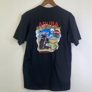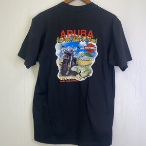 Harley Davidson - One Cool Bikers Island Aruba Dutch Caribbean Black Shirt with Lizard and Bike Size Large