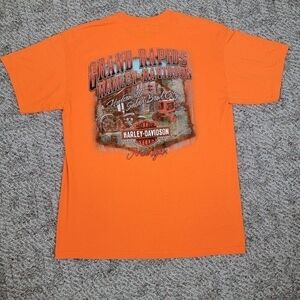 Harley Davidson Orange Grand Rapids Michigan Motorcycle Graphic T-Shirt Sz L