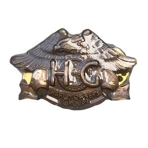 New Harley Davidson Owners Group HOG Pin Eagle Rocker Motorcycle Biker Vest Hat Vest Jacket, 1 3/4" wide metal pin with bronze color finish